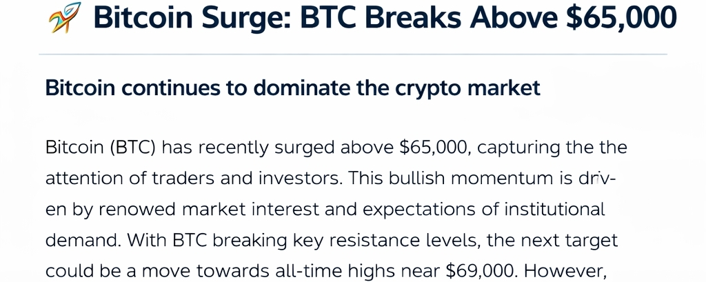However, traders should remain cautious. If Bitcoin fails to hold above the $65K support, we could see a deeper correction toward $62K or even lower levels. Risk management is crucial in this phase, especially for leveraged positions.