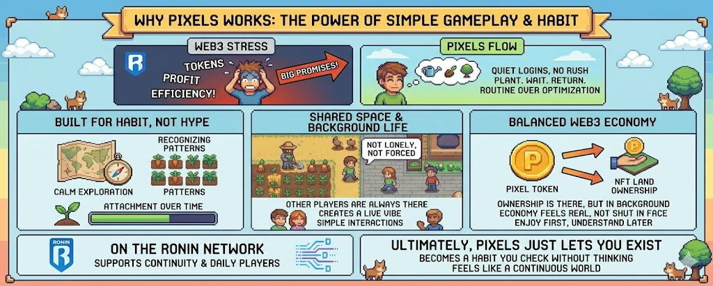 I’ve been thinking about this for a while, and the more time I spend in Pixels, the more I feel like its biggest strength is something most people don’t even notice at first.