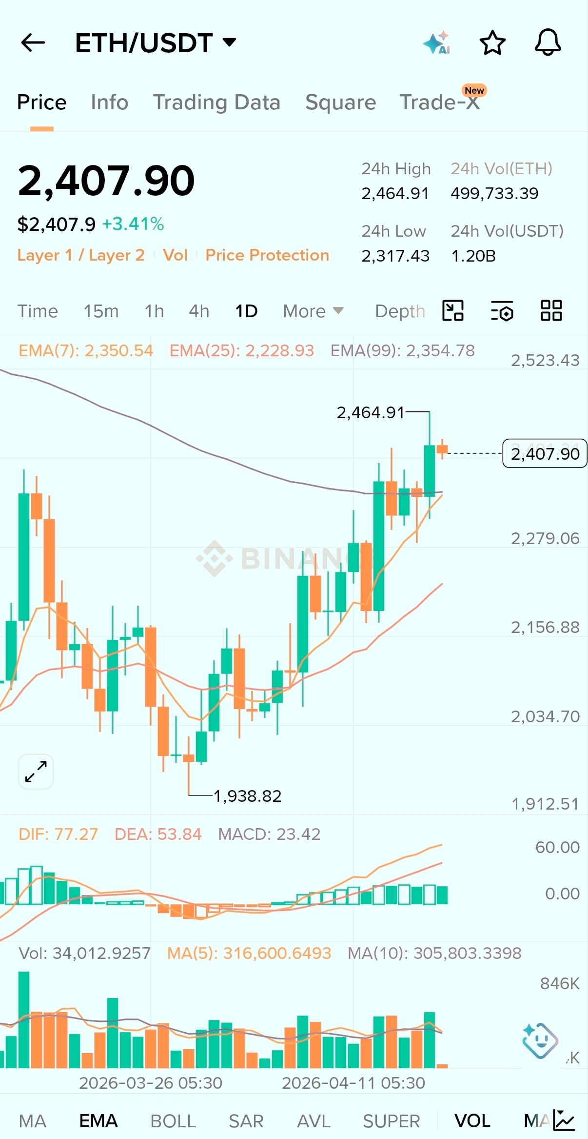24h Volume (USDT): $1.20 Billion