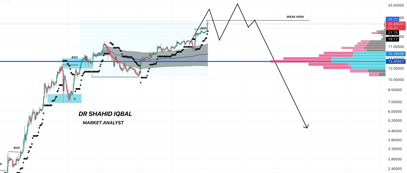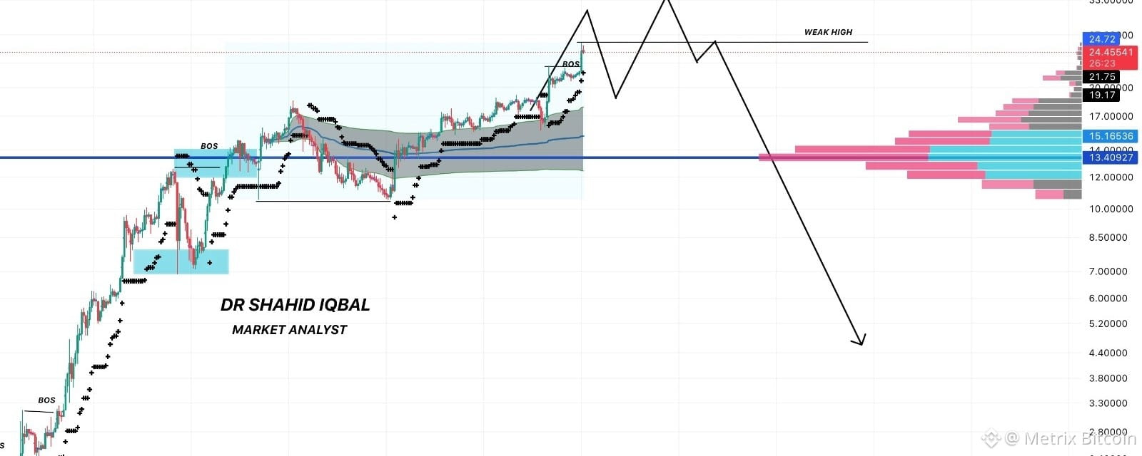 , the anticipated drop in RAVE could be sharper and more impulsive. The current structure shows signs of a weak high, meaning buyers are losing strength near resistance levels. If this weakness confirms, it could lead to a strong rejection and a rapid move downward.