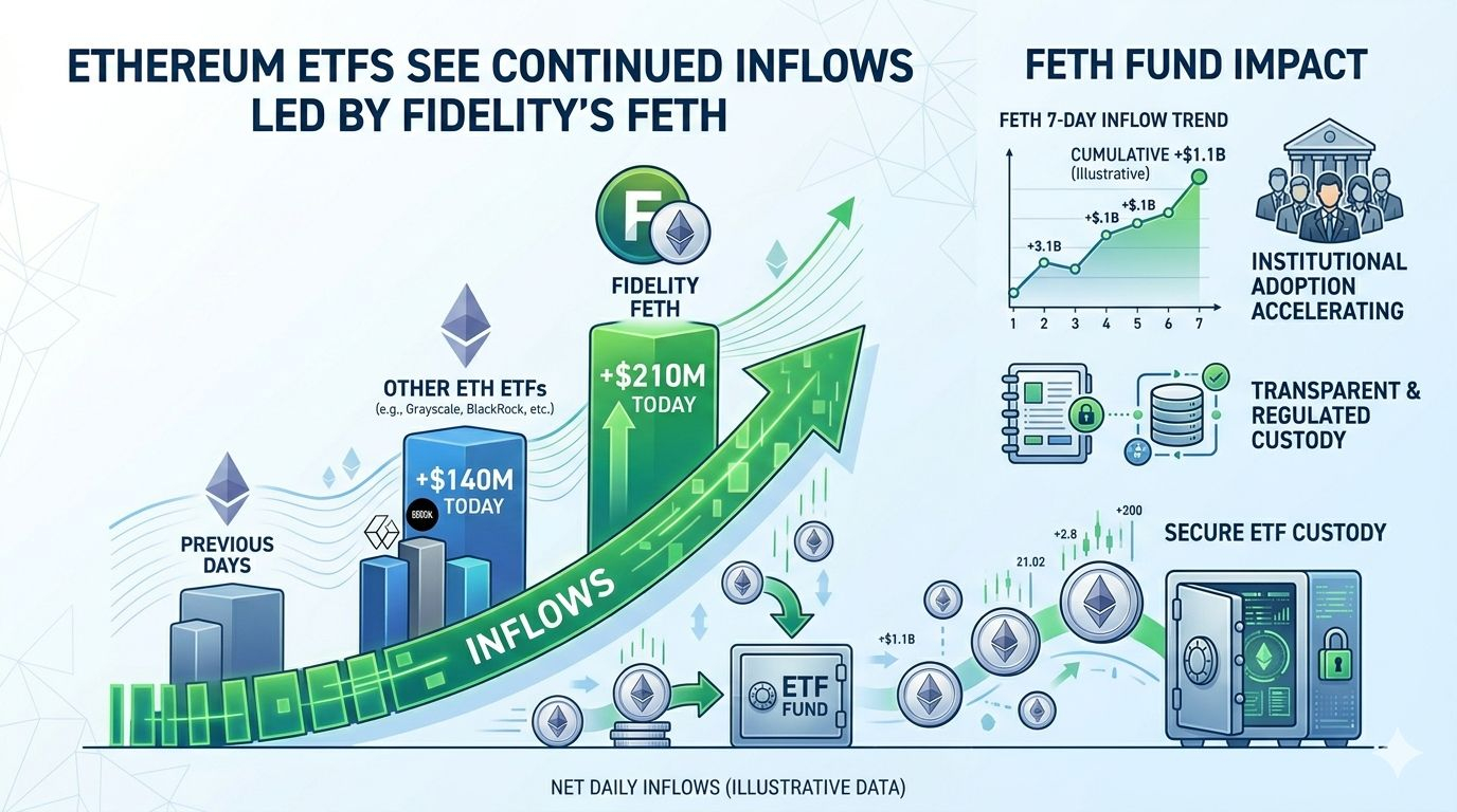 In summary, the continued inflows into U.S. spot $ETH ETFs, led by Fidelity’s FETH, highlight a meaningful shift in market behavior. Investors are increasingly seeking regulated, simple, and familiar ways to gain exposure to Ethereum. This trend may play an important role in shaping the future of both Ethereum and the broader digital asset market as it continues to evolve.