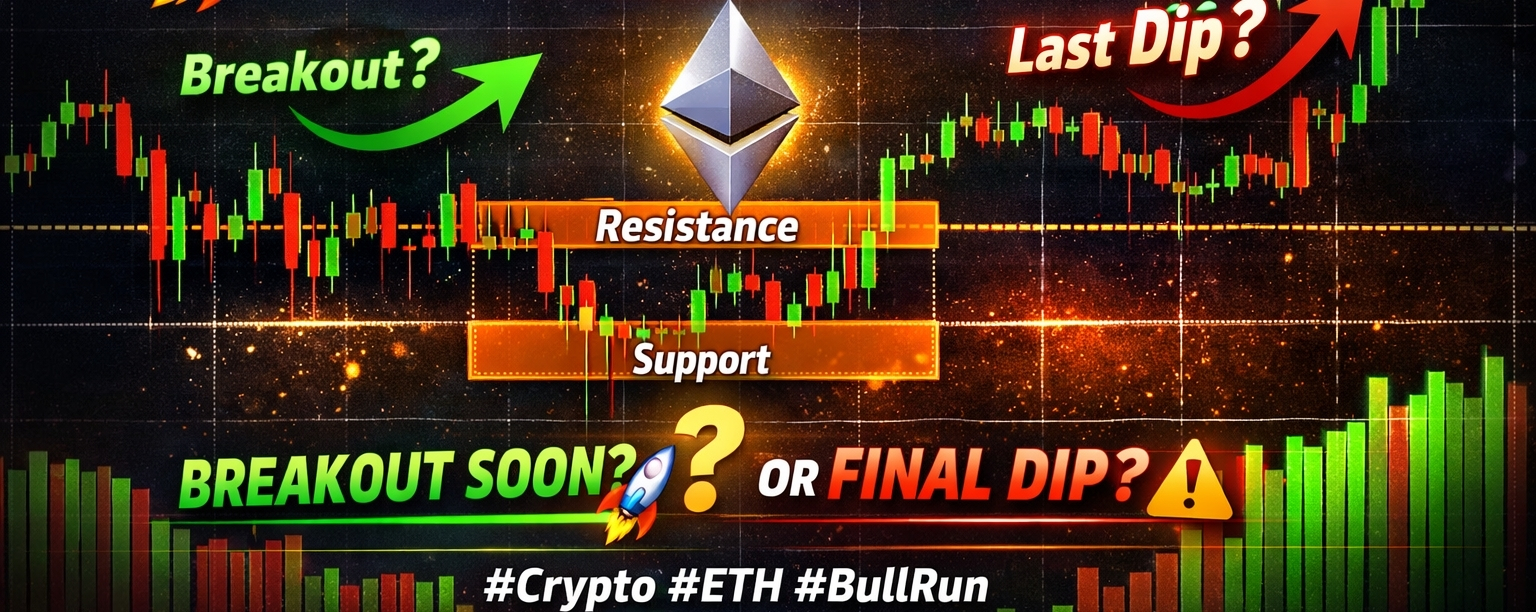 ETH is holding a key support zone, showing strong buyer confidence. Low volatility + tight price range = high breakout potential.