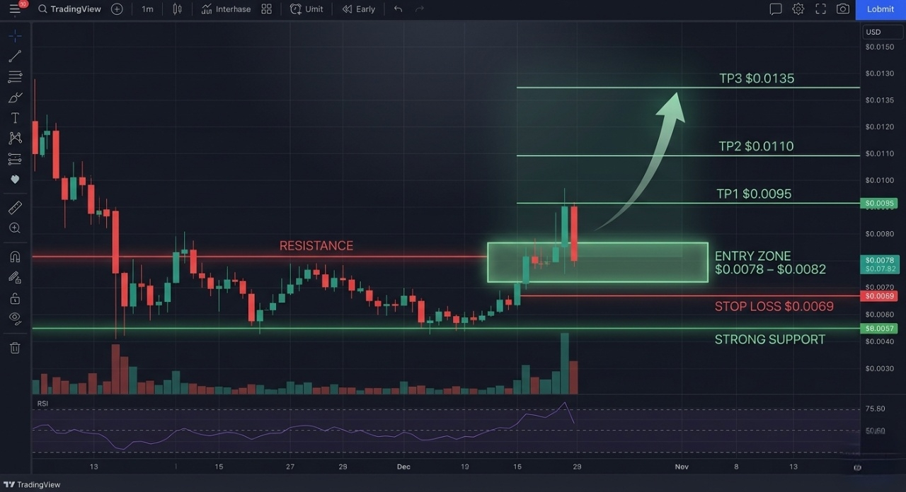 🎯 TP 1: $0.0095 (Resistance terdekat)