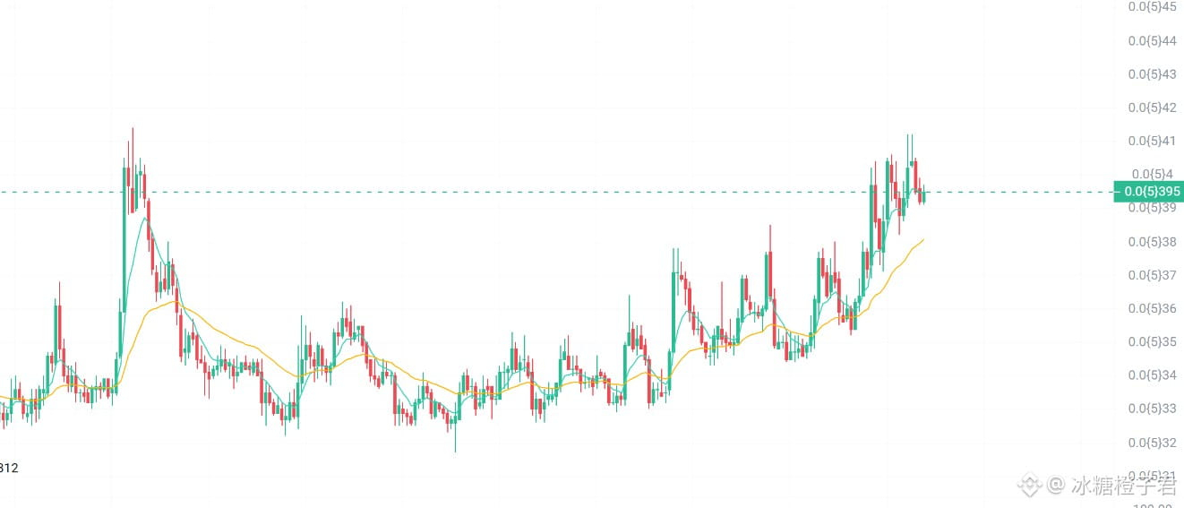 $PEPE 的走势相对更干净,沿着上升通道运行,在守住中轴位置后配合放量继续上行,属于典型的趋势延续结构。这种行情拼的就是耐心和执行力,而不是频繁操作。