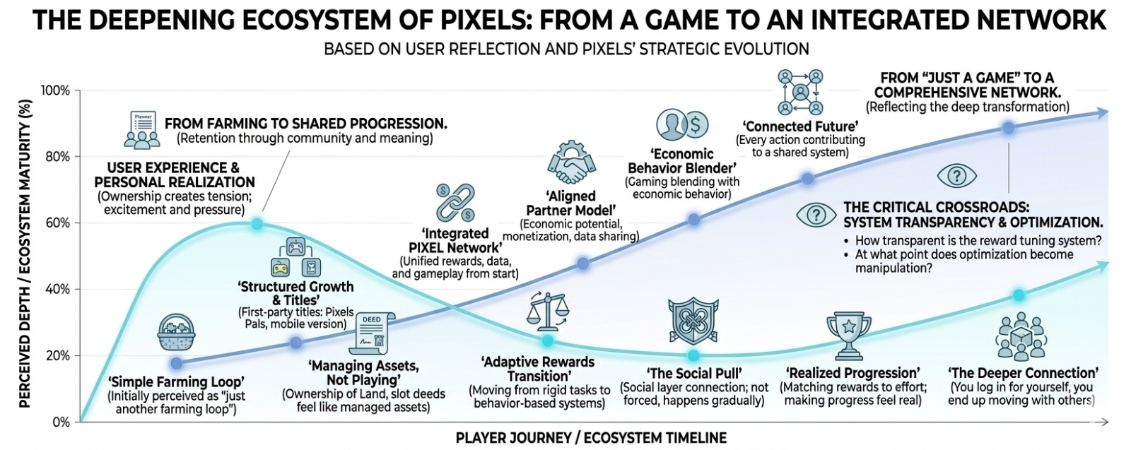 What looks like a casual game is slowly evolving into an ecosystem. With first-party titles like Pixels Pals on the way and a mobile version of the core experience in development, it’s clear this isn’t just about one game anymore, it’s about building a network. The idea that every game integrates PIXEL from the start shows how tightly rewards, data, and gameplay are being connected. It’s not random expansion; it’s structured growth.