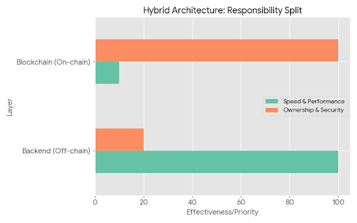 This balance allows the game to support large numbers of players smoothly while still maintaining verifiable digital ownership of key assets and tokens.