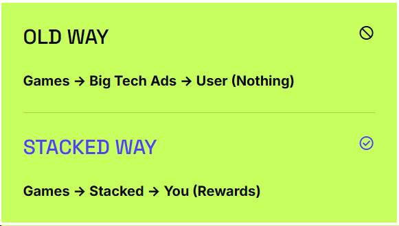 What Stacked actually is or at least how it feels from inside it , is a rewards layer where players can earn cash, crypto, or other value for actions that actually matter inside games. Not passive time. Not filler quests. Not attention farming. There's also an underlying system that adjusts what you see based on how you play, so the experience isn't identical for everyone moving through it.