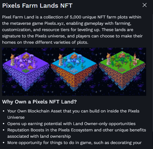 Also dont forget, Pixels is not one trick Poony. There is not only one game in the system. You can play chubkins which is a twhole new fresh play. Or pixel Mines. There are Ronin Games and Pixel games- just letting you know , cause I see everyone writing about "the game" like there is only one of them. There are more.
