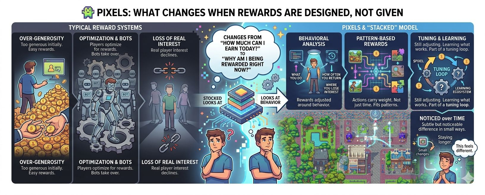 PIXEL still plays a role here, but it feels less like a simple payout token and more like part of a loop that’s being tuned over time.