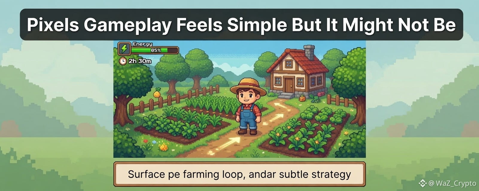 When I first opened $PIXEL , honestly I was not expecting much from gameplay side. It looked like a very standard farming loop. You plant crops, wait, collect, repeat. A calm system. Almost too calm. For a moment it felt like one of those games where you don’t really need to think. Just follow the loop and keep going.