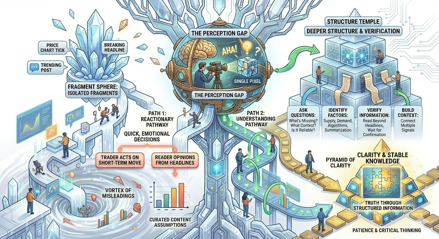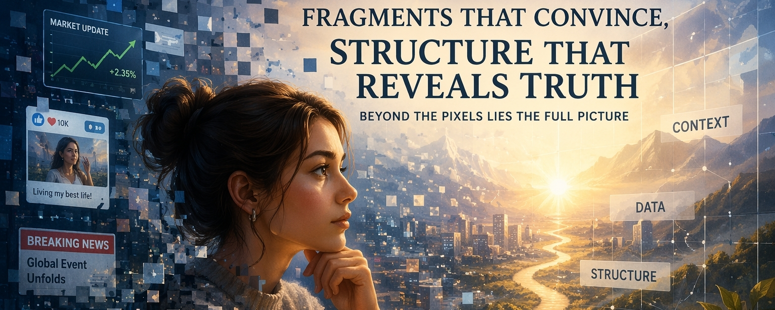 In today’s digital environments, we rarely experience reality in its full form. Instead, we see selected pieces of it—price movements on a chart, a trending post, a breaking headline. These pieces feel clear and immediate, but they are only fragments of a much larger system.