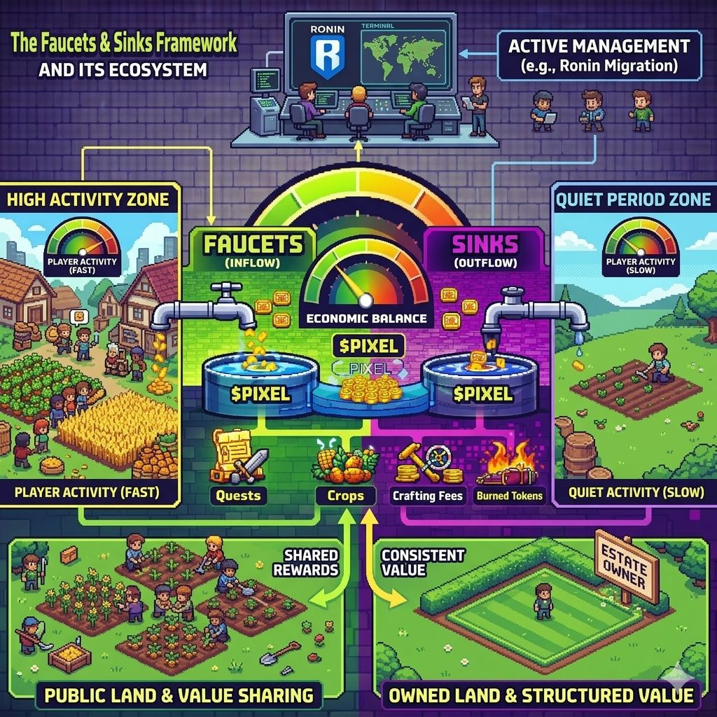 Na początku myślałem, że gospodarki gier są proste—zarabiaj, wydawaj, powtarzaj. Ale Pixels uświadomiły mi, że chodzi naprawdę o „krany i zlewy.” Nagrody, plony i zadania przynoszą wartość. Ulepszenia, rzemiosło i opłaty ją zabierają. Brzmi podstawowo, ale uzyskanie tej równowagi to miejsce, w którym większość projektów zawodzi.