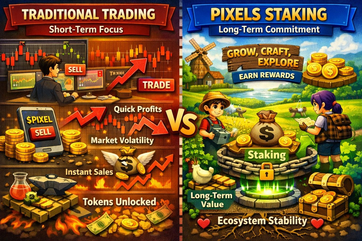 Instead of keeping tokens available for quick trades, they are committing to the long-term growth of the game. This creates a sense of stability and reduces short-term selling pressure.