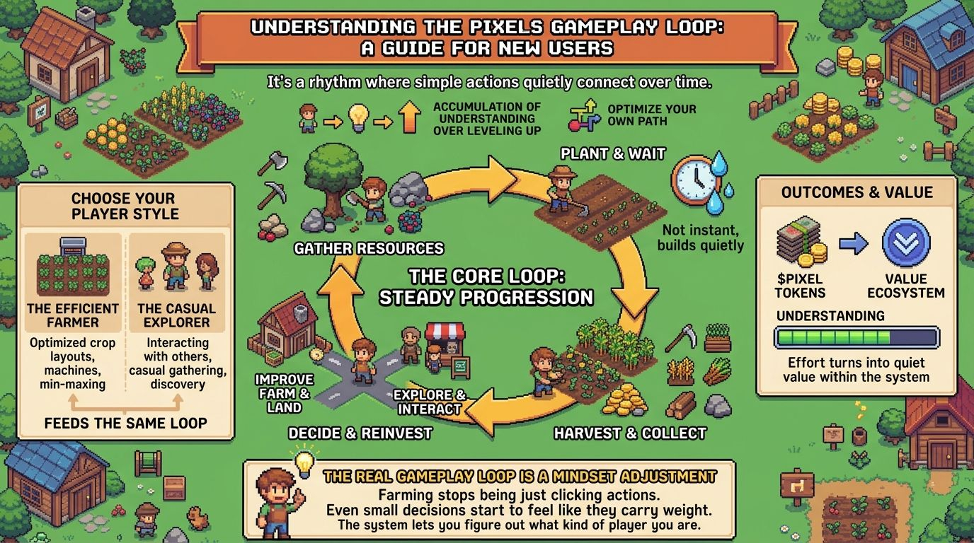 I noticed something interesting when I started paying attention to @Pixels more closely. The game doesn’t push you in one direction. It sort of lets you choose how you want to treat your time inside it. Some people focus on farming efficiency, others just explore and interact with systems casually. Both end up feeding back into the same loop.