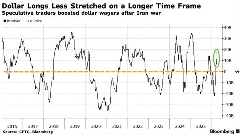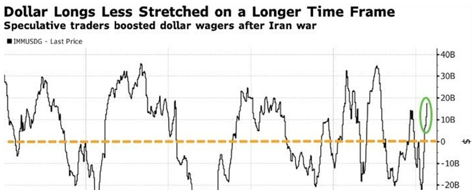 +$18 miliardów długa pozycja: Netto bycze pozycjonowanie spekulacyjne w dolarze amerykańskim wzrosło do +$18 miliardów.