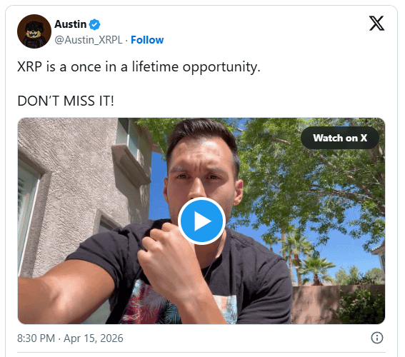 $XRP Entuzjasta kryptowalut znany jako Austin niedawno powtórzył swoje silne przekonanie o XRP, opisując je jako „jedyną w swoim rodzaju okazję”.