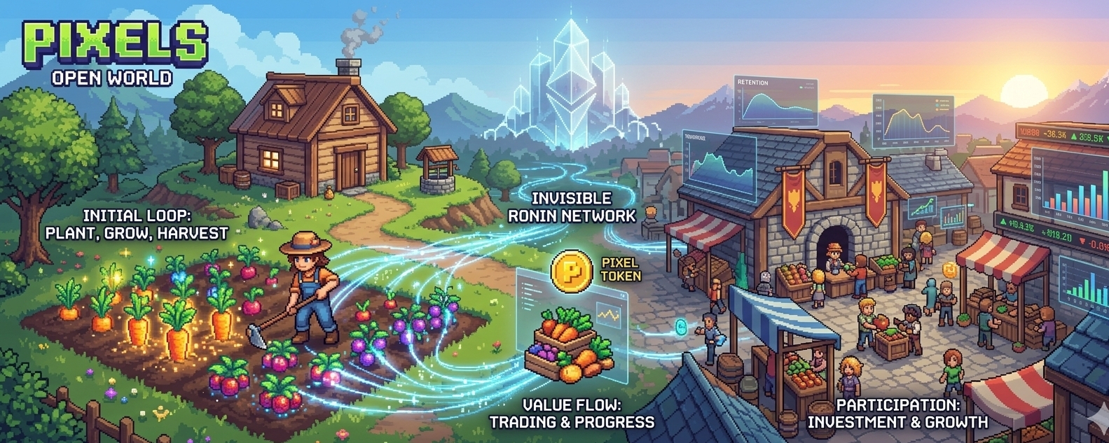 Pixels didn’t arrive like something trying to change the world. It began in a much softer way, almost like a quiet experiment hidden inside a familiar idea. A farming game. A simple open world. A place where you plant, explore, upgrade, and repeat. Nothing about it screamed revolution at first glance.