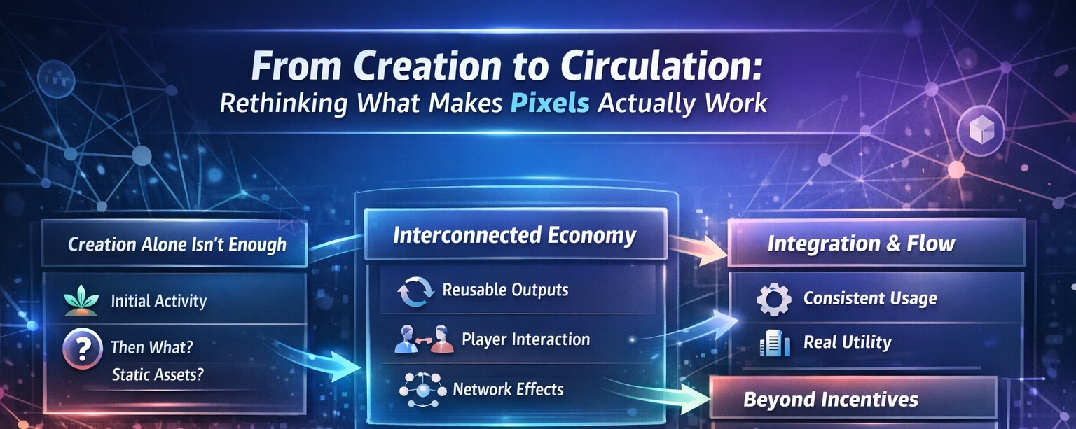 Okay, so structurally, Pixels is trying to build that. It introduces resource cycles, player-owned assets, and a shared environment. But the real question is whether those mechanics translate into consistent interaction, or if they remain isolated loops.