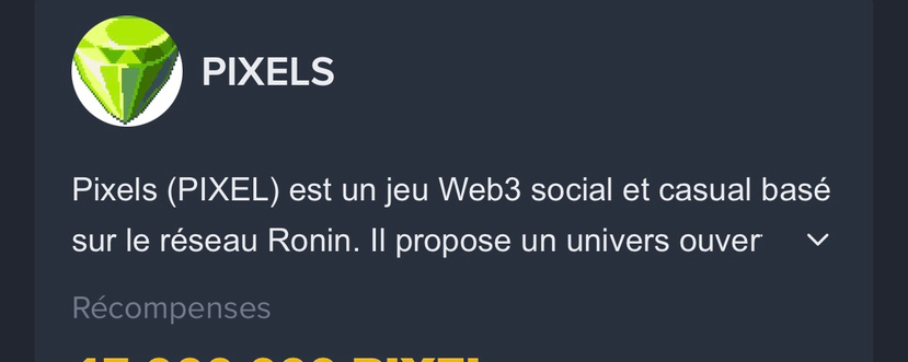 PIXEL est un token GameFi → très volatil