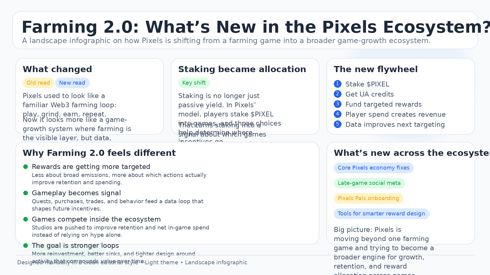 Whether that bigger thing becomes a durable gaming ecosystem or just a very elaborate reward-optimization engine is still the open question. But the update is real. Farming 2.0 in Pixels is not about better crops.