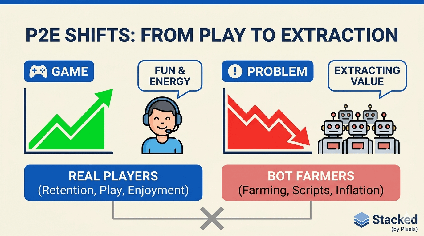 Retention dropped, bots scaled, and what looked like growth was often just empty activity. Once extraction becomes easier than actual play the whole loop flips.