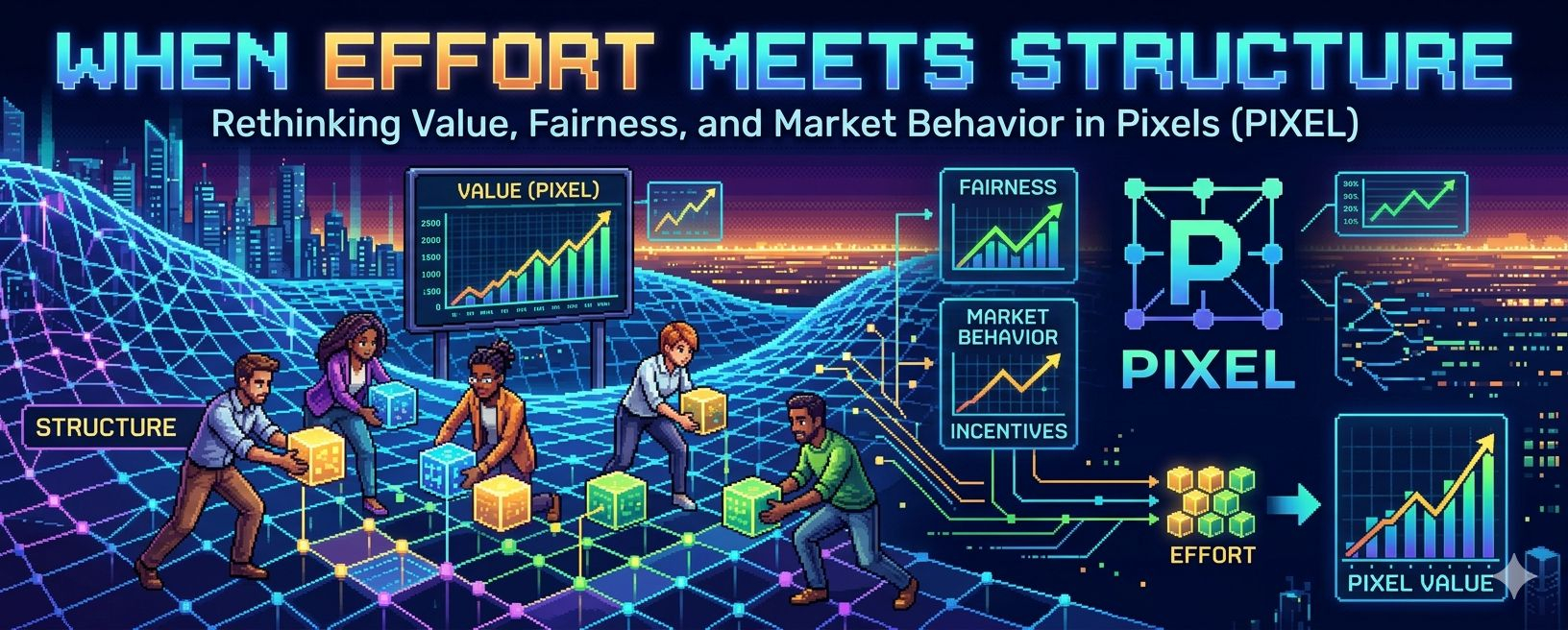 Teoretycznie gra taka jak Pixels wprowadza wolniejsze, bardziej osadzone cykle. Rolnictwo, zarządzanie zasobami, interakcje społeczne — to nie są z natury spekulacyjne działania. Są powtarzalne, oparte na wysiłku i czasochłonne. Projekt wydaje się sugerować system, w którym wartość wyłania się stopniowo, a nie jest wstrzykiwana przez agresywne zachęty.