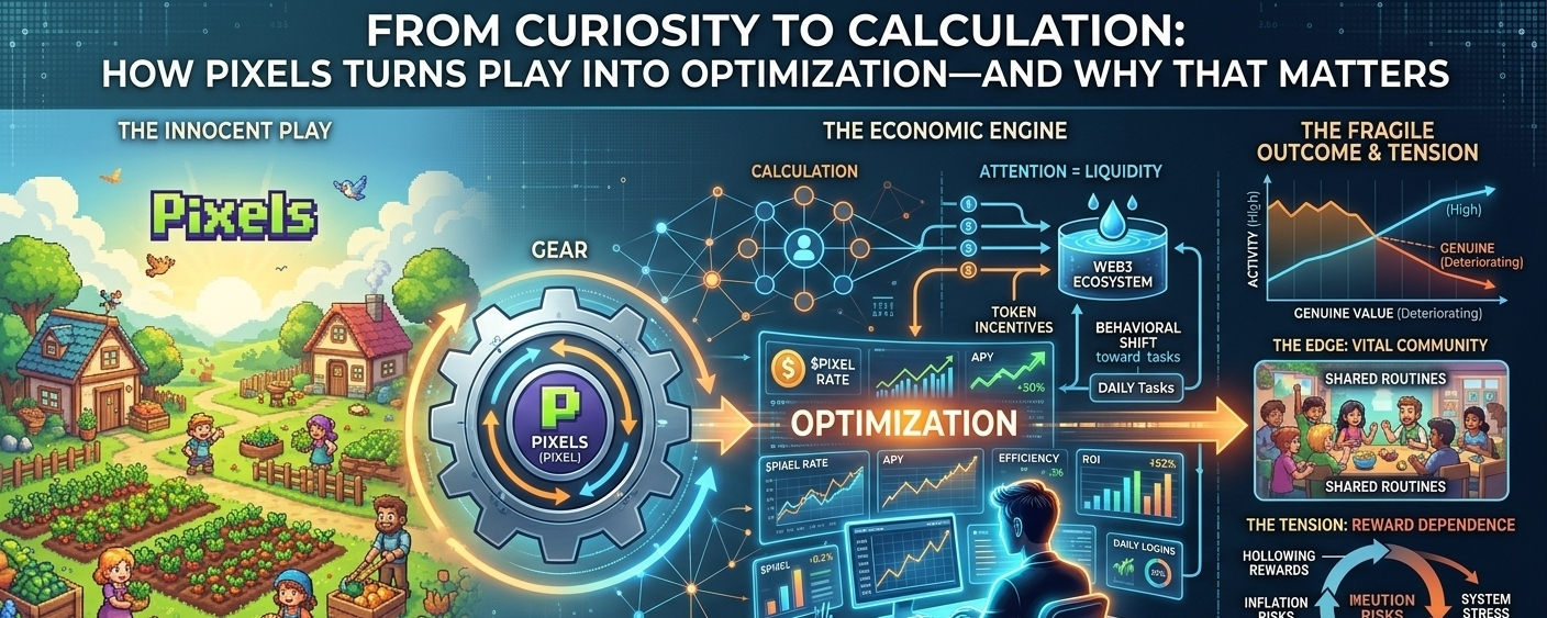 In Web3, attention is liquidity. If people show up, stay active, and keep interacting, the system breathes. Pixels understands this deeply. It doesn’t demand intensity—it encourages routine. Log in, complete tasks, optimize output, repeat tomorrow. Over time, I stopped playing freely and started playing efficiently. My curiosity turned into calculation.
