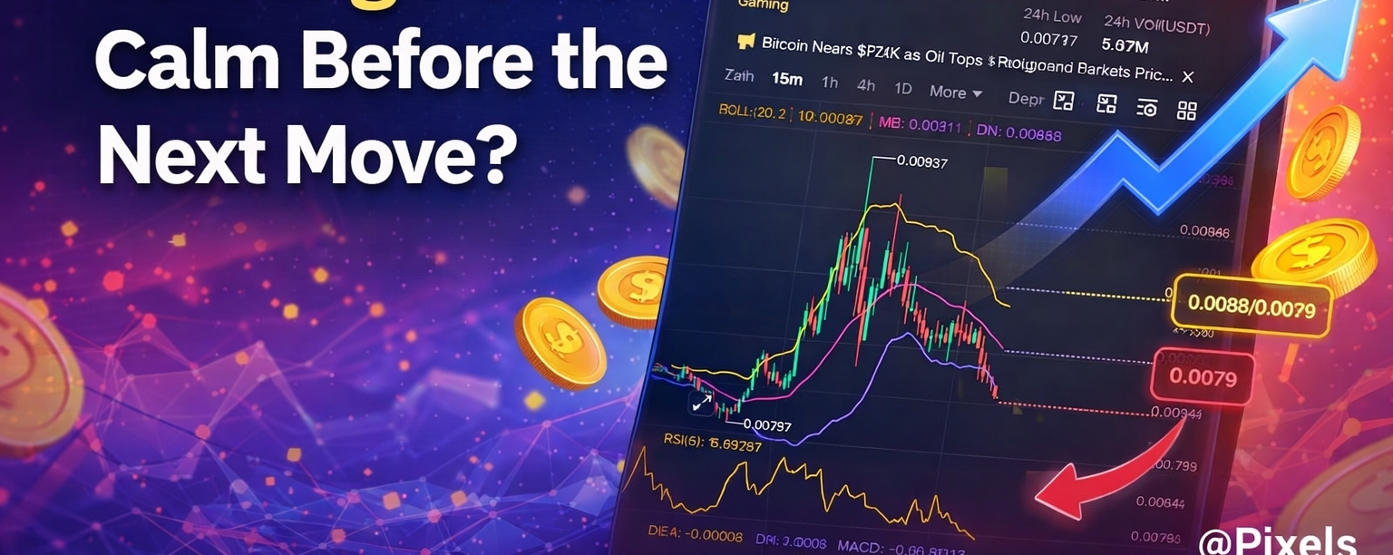 Right now, $PIXEL is showing a slow drop after a small pump, and this is very normal in crypto. The chart shows that price touched near 0.0093 and then started coming down. At the moment, it is around 0.0082, which means sellers are active in the short term.