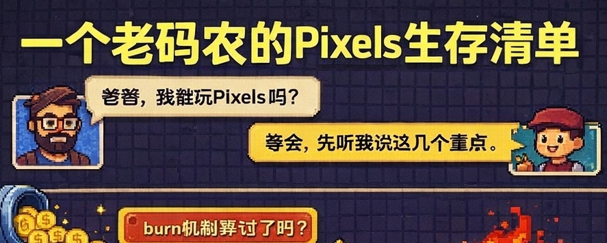 我儿子问我能不能玩Pixels。我说行,主要是好奇他能学到什么。答案是:比预期多,比营销说的少。他资源管理学得很快——种植时机、收割节奏、 craft还是sell的决策。这些确实有教育价值。但我没准备好解释什么是钱包,为什么虚拟土地要花真钱,以及token到底是什么。如果你愿意坐在旁边一起啃这些硬问题,Pixels有 genuine 的教育层。大多数父母不会。这是所有指南都没提的部分。