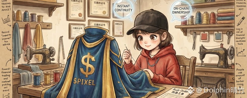 Ale @Pixels działa na łańcuchu Ronin, ziemia, przedmioty, postacie - te kluczowe aktywa to NFT na łańcuchu. To oznacza, że twoja "marynarka" nie jest już ustną obietnicą krawca, ale niezmiennym dowodem własności zapisanym w "akcie własności" na blockchainie. Nawet jeśli wersja gry się zmieni, nawet jeśli krawiec zmieni właściciela, ta przynależność na łańcuchu wciąż będzie ważna. Przenosi to fałszywy dobrobyt "wewnętrznego rozliczenia platformy" w kierunku "prawdziwego posiadania, które możesz trzymać, a platforma nie może swobodnie odebrać". To jest #pixel prawdziwa twarda wartość: to nie tylko tokeny do wydawania, ale także przepustka od "prawa użytkowania" do "prawa własności".🪪