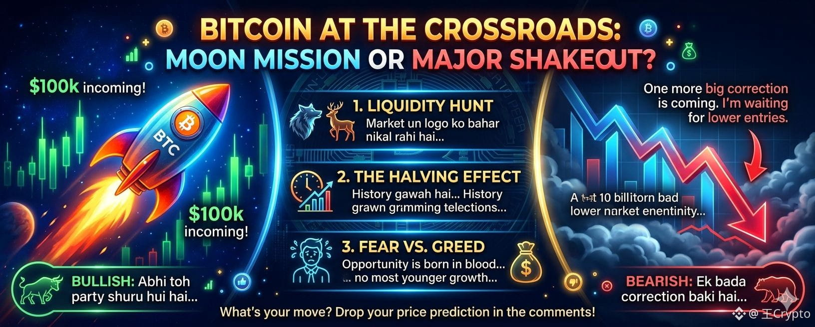 All eyes are on the charts! Bitcoin is currently at a critical junction where we could either see a massive "God Candle" or a brutal "Weak Hands" flush. 🏛️💸