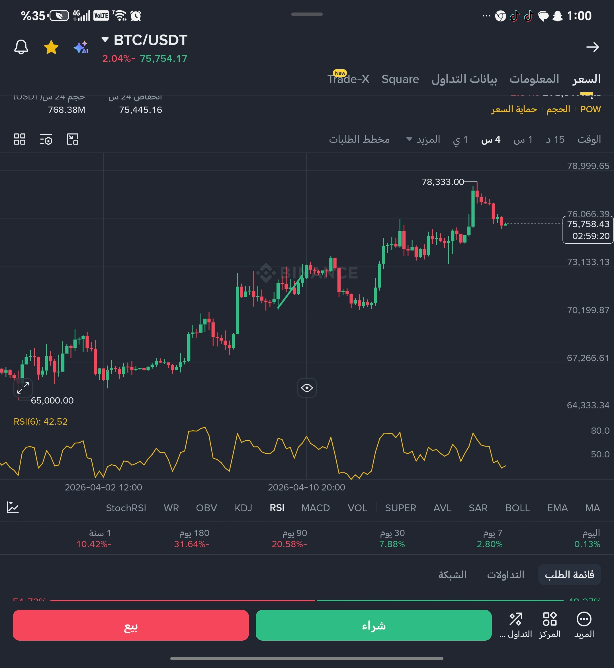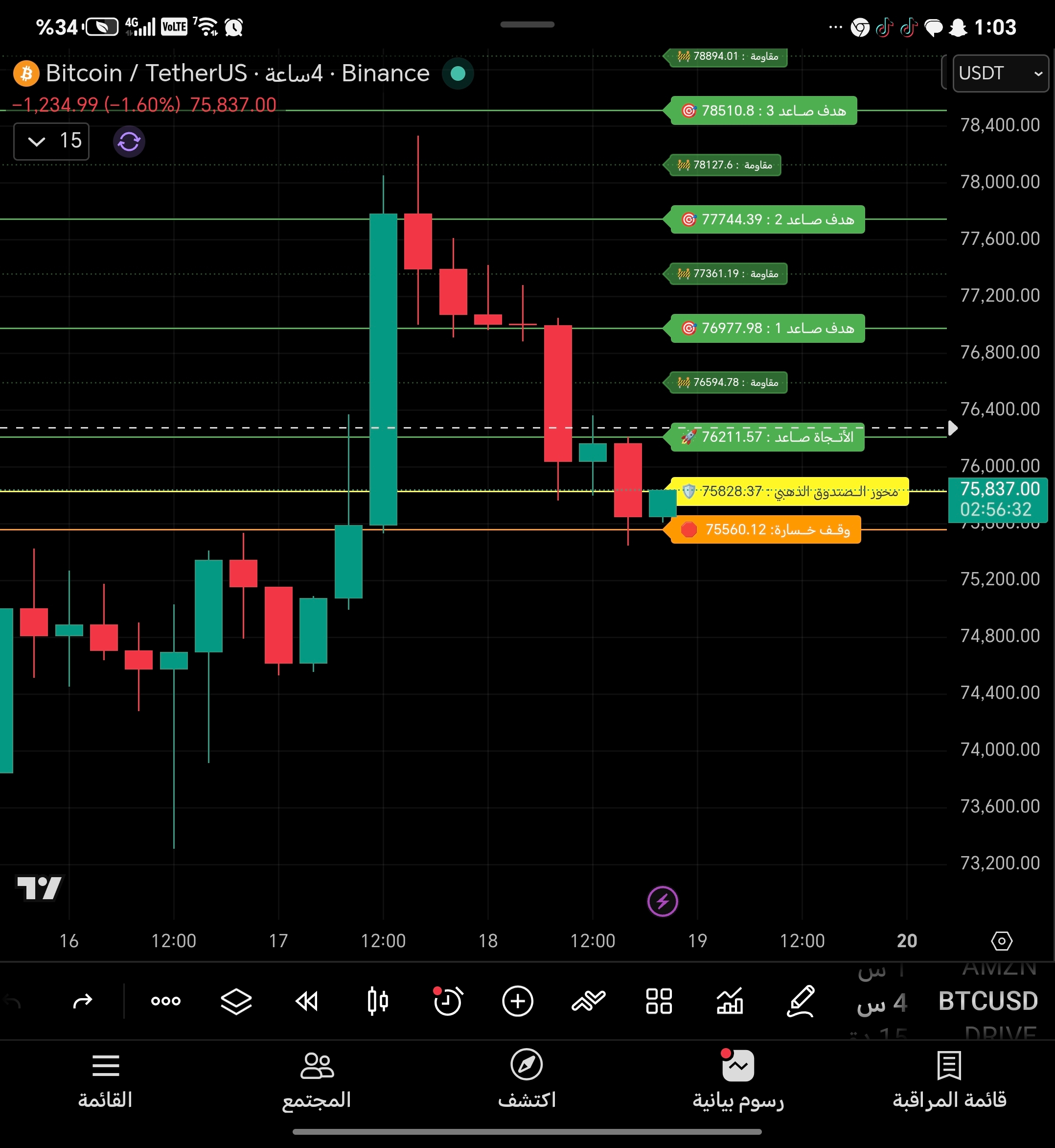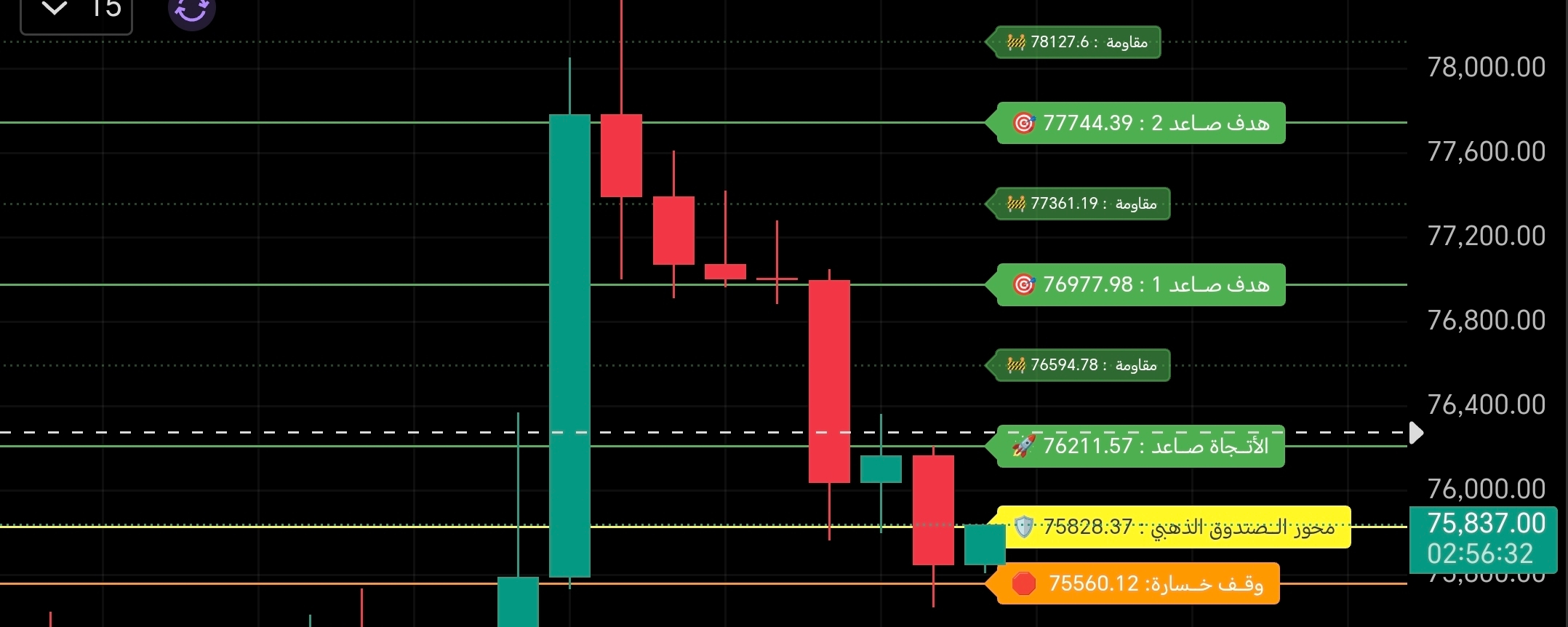 🟢 شراء: 75,200 - 75,500