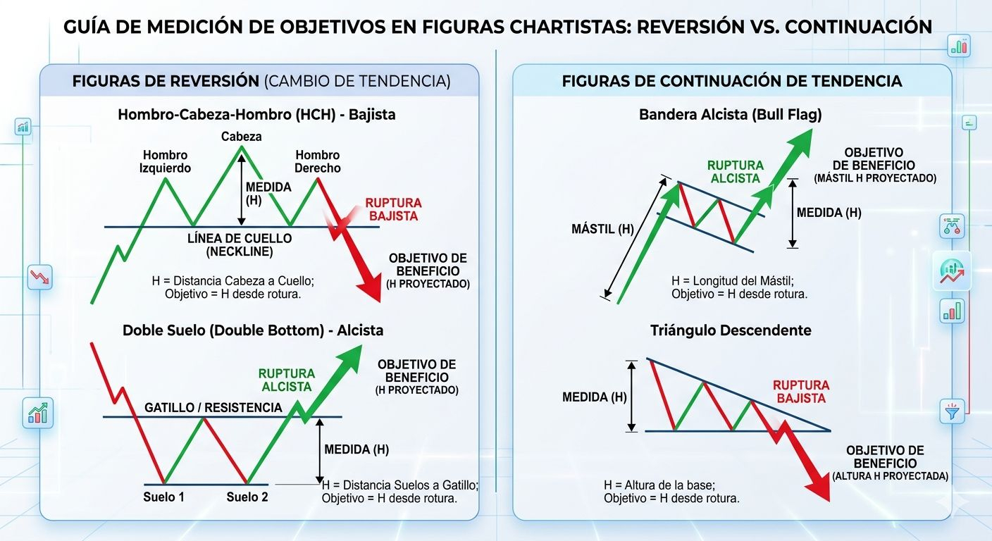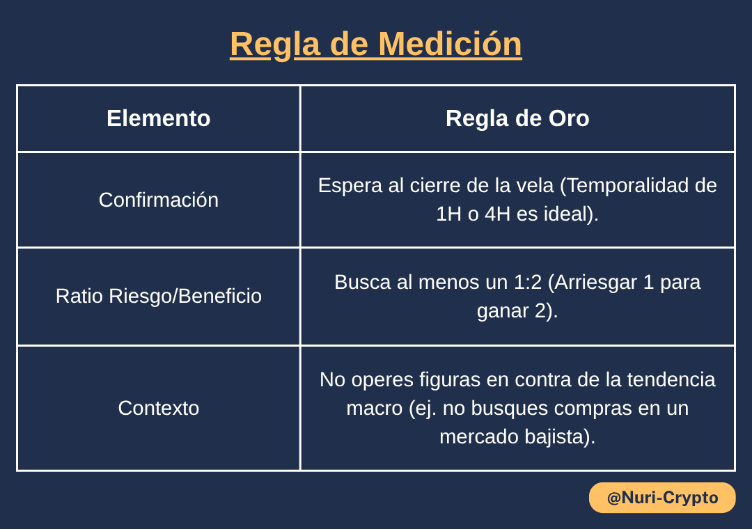 Stop Loss (Protección): Colócalo siempre dentro de la figura. Si el precio vuelve a entrar profundamente en el patrón, la figura ha fallado.