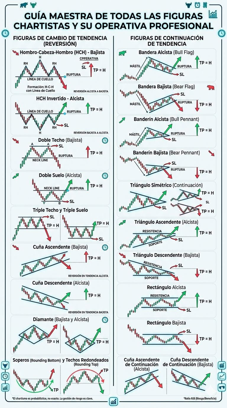 Un Consejo: El chartismo no es una ciencia exacta, es un juego de probabilidades. Las figuras te dan una ventaja estadística, pero siempre debes acompañarlas de una gestión de riesgo impecable. Recuerda: el mercado puede hacer cualquier cosa, pero las figuras te dicen qué es lo que probablemente hará.