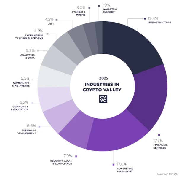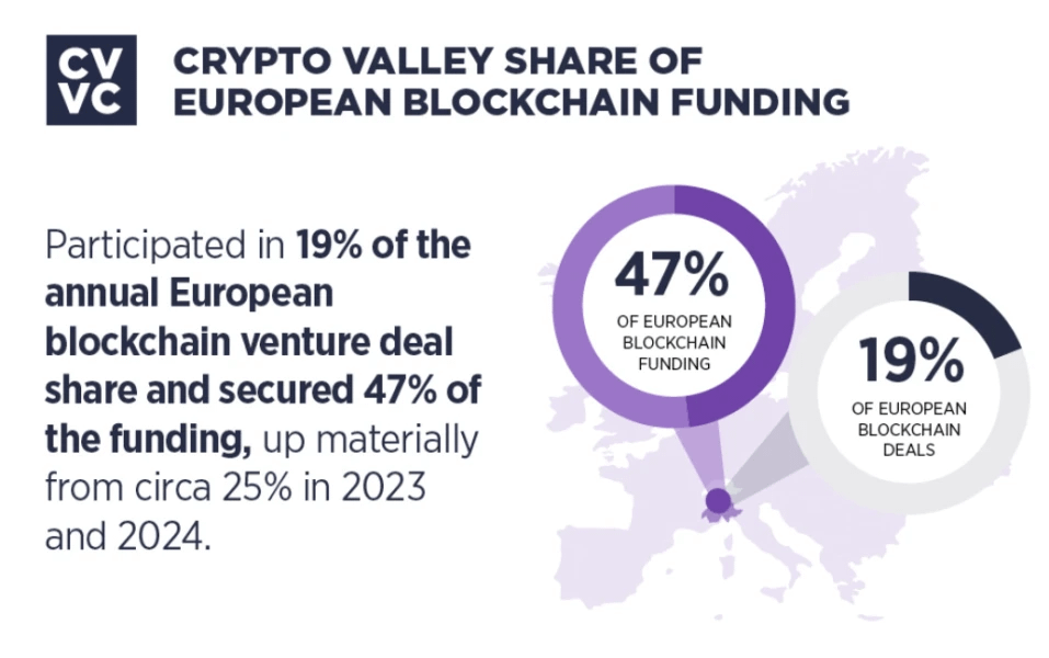 Switzerland’s Crypto Valley strengthened its position as Europe’s leading blockchain hub in 2025, attracting 47% of all European blockchain venture capital with $728 million raised across 31 deals, according to CV VC.