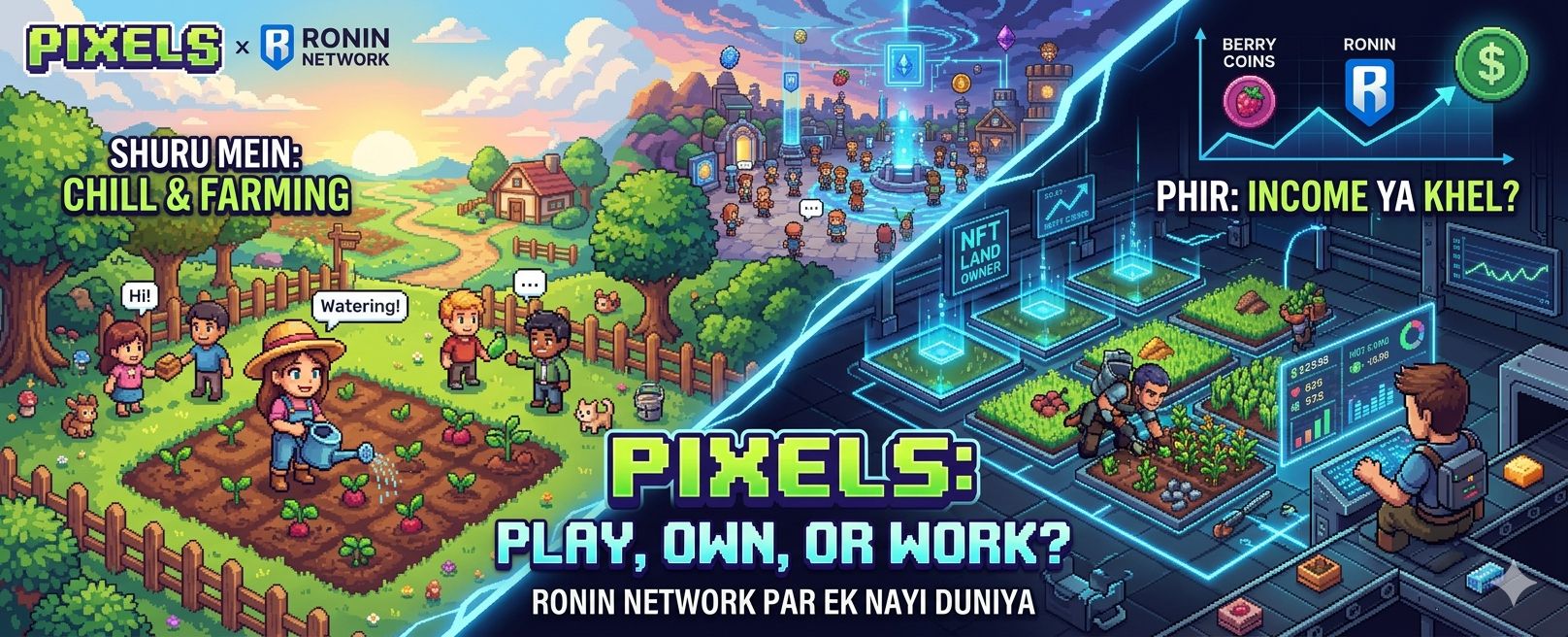 Yeh cheez thodi si familiar lagti hai, kyunki pehle bhi aisa model dekhne ko mila hai, especially Axie Infinity mein. Wahan bhi logon ne game ko income source bana liya tha. Lekin jab system slow hua, toh problems bhi saamne aayi. Pixels clearly us phase ke baad aaya hai, isliye yeh thoda balanced feel hota hai entry easy hai, har cheez blockchain par nahi hai, aur game zyada natural lagta hai. Phir bhi, ek basic sawaal wahi ka wahi rehta hai: jab game mein paisa involve ho jaye, kya woh sirf game reh pata hai?