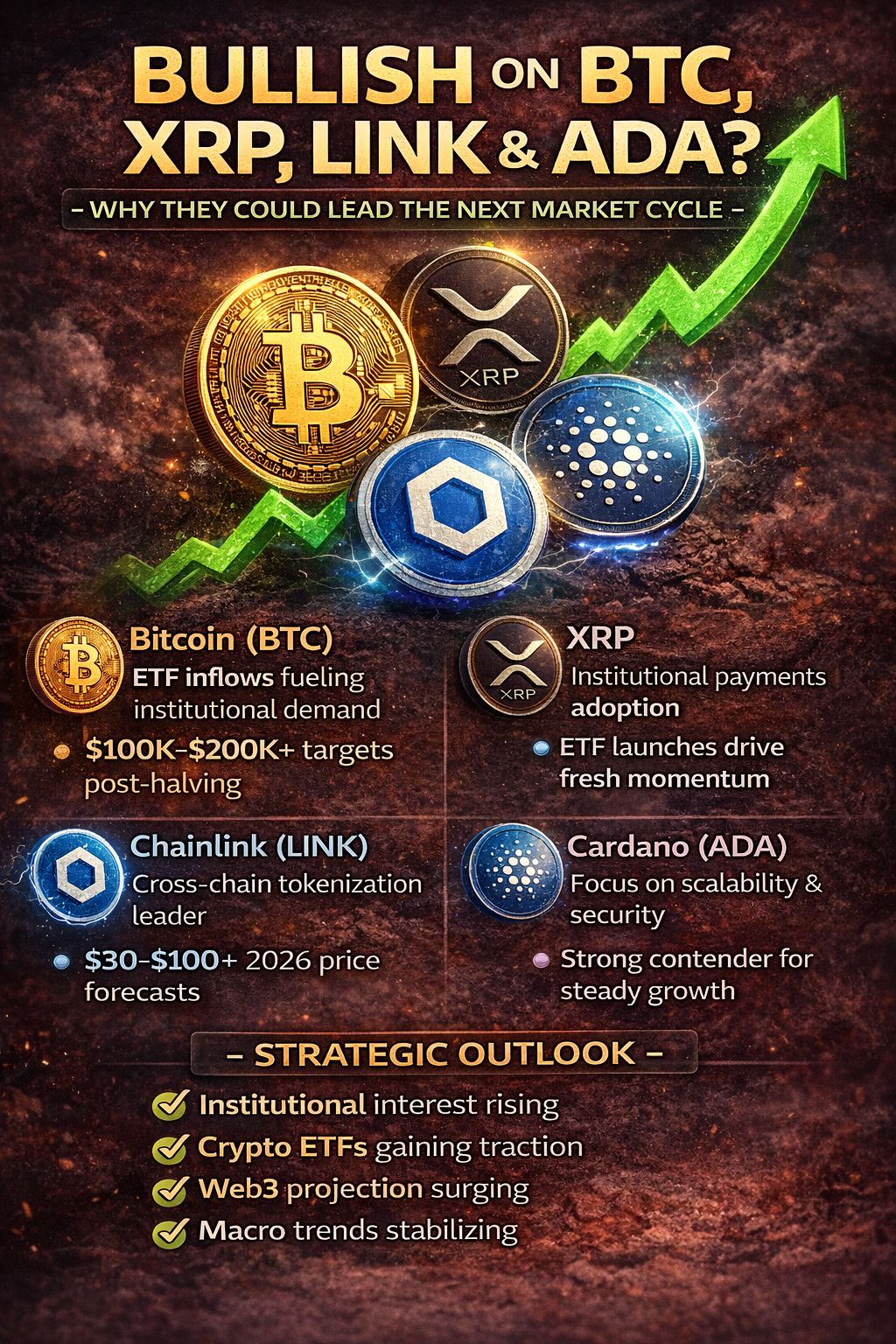 Rynek kryptowalut wchodzi w fazę, w której fundamenty mają większe znaczenie niż hype. Aktywa takie jak BTC, XRP, LINK i ADA to nie tylko monety – to infrastruktura przyszłego systemu finansowego.