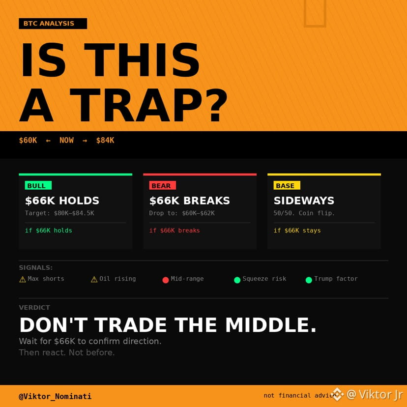 #Btcbelow60k If BTC holds above $66k we could see a push toward $72-73k. break that and the next target is $80-84k. BUT if $66k breaks and confirms on the weekly — i think $60-62k comes pretty fast.