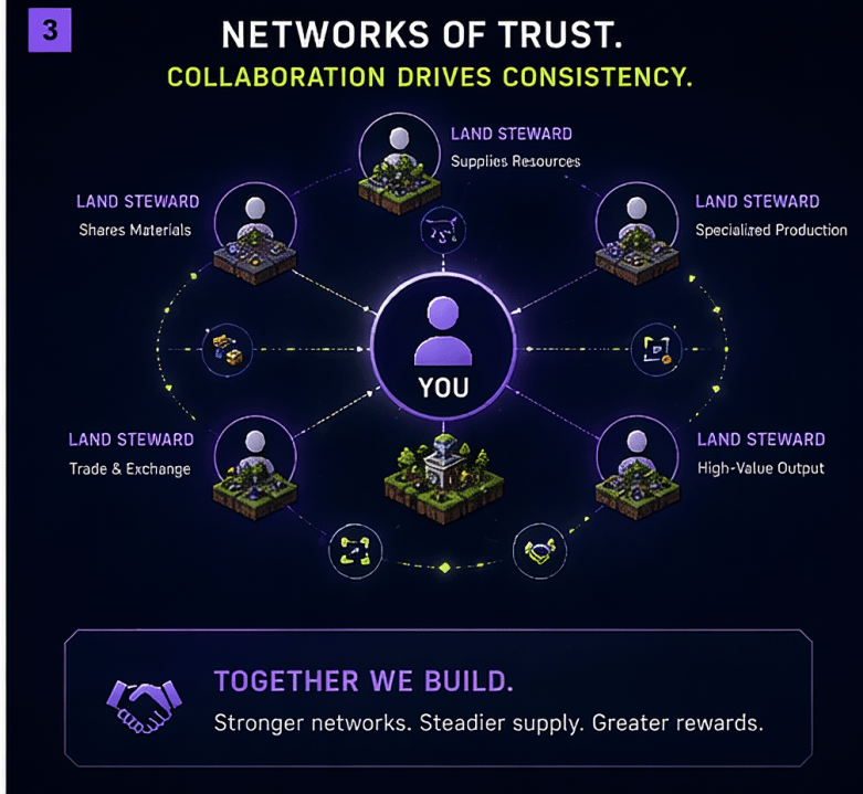 I observed that the players who are succeeding right now are the ones who have built networks of trust with other land stewards to ensure a steady flow of resources.