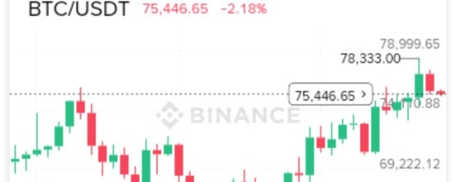 Over the past few weeks, Bitcoin climbed steadily from around $65,000 to nearly $79,000. That’s a strong upward move — the kind that gets traders excited and brings new money into the market. You can clearly see those green candles stacking up, showing consistent buying pressure.