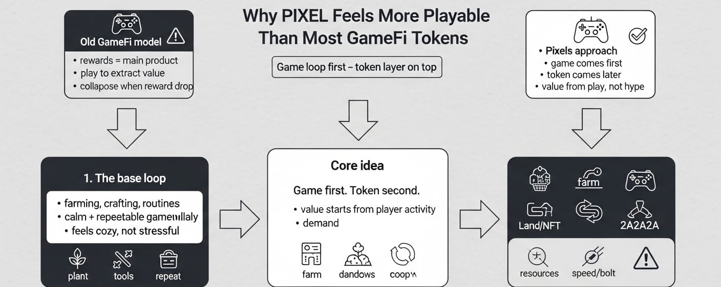 Pixels feels like it’s trying to rebuild the order of operations. not “token first, game later,” but game loop first, token sitting on top. that sounds like a small change, but it changes the whole risk profile. because now the real question becomes: would anyone still spend time here if the rewards weren’t screaming at them every minute?