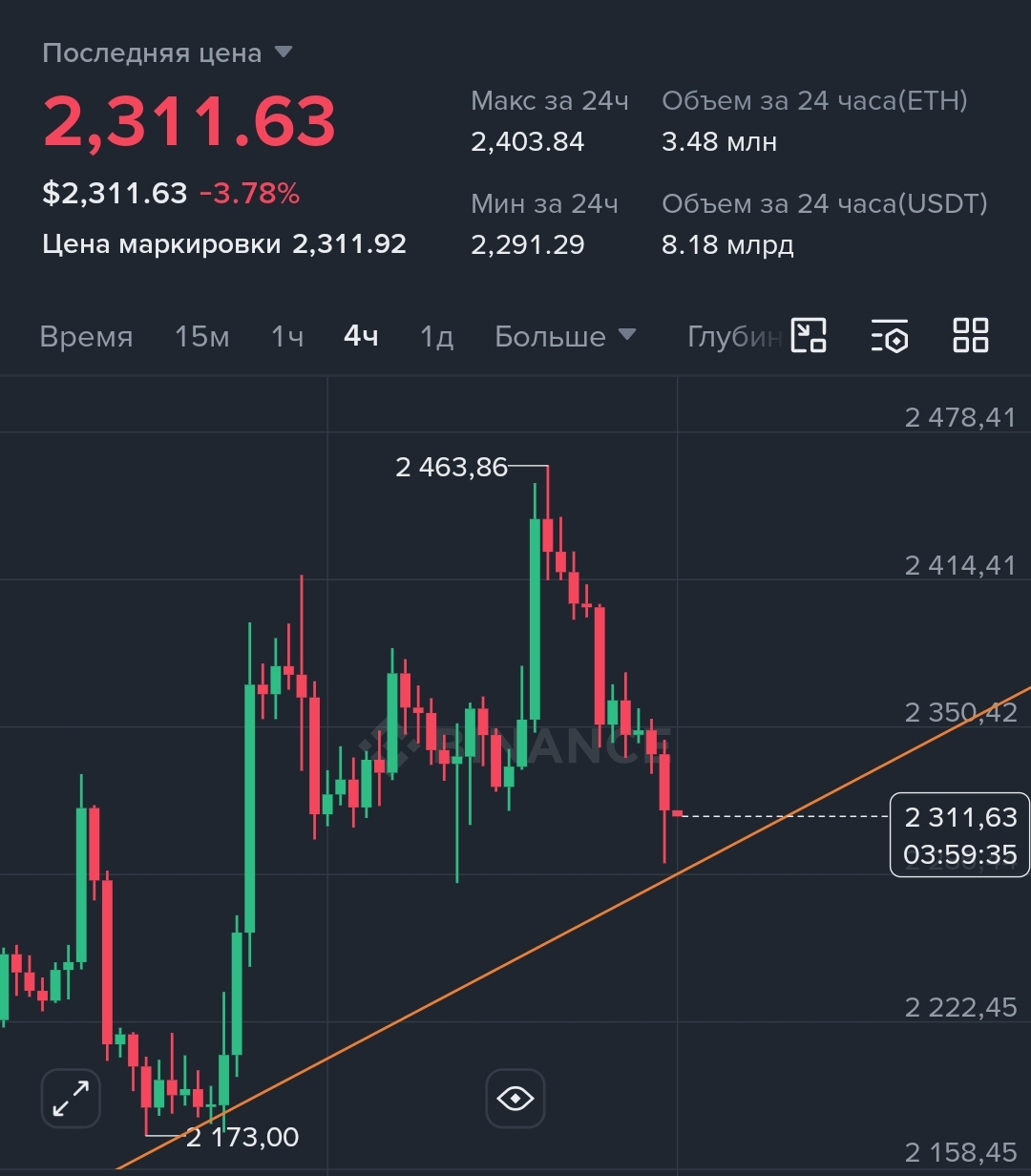 Открываю сделку по $ETH в лонг,после снятия ликвидности снизу,ожидаю снятие сверху