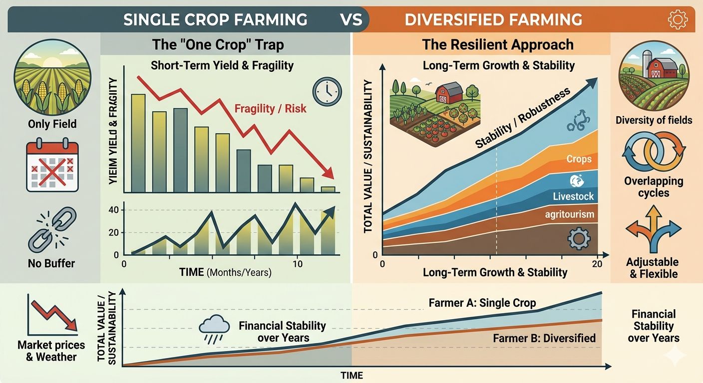 They don’t rely on just one output. They spread things out. Different crops, different cycles, different ways of earning.