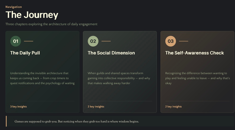 Still if you’re playing heavy every once in a while it’s worth asking yourself straight up: Am I here because I actually want to be or because the game made leaving feel kinda expensive?