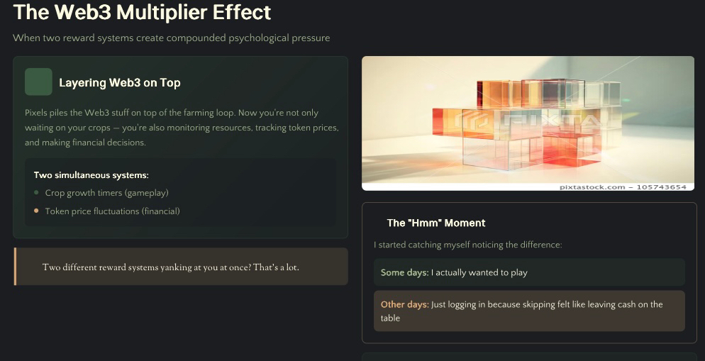 Pixels just piles the Web3 stuff on top. So now you’re not only waiting on your crops you’re also eyeing your resources, thinking about token prices, and wondering if today’s the day to sell or just hold. Two different reward systems yanking at you at once? That’s a lot.