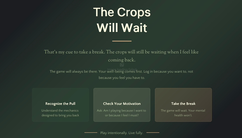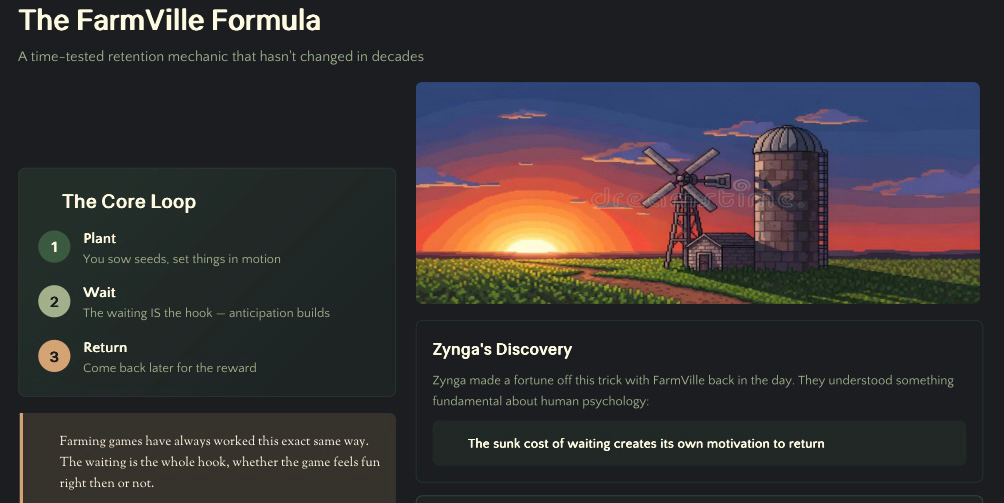 Farming games have always worked this exact same way. You plant, you bounce, you come back later for the reward. The waiting is the whole hook, whether the game feels fun right then or not. Zynga made a fortune off that trick with FarmVille back in the day, and honestly the psychology hasn’t changed one bit.