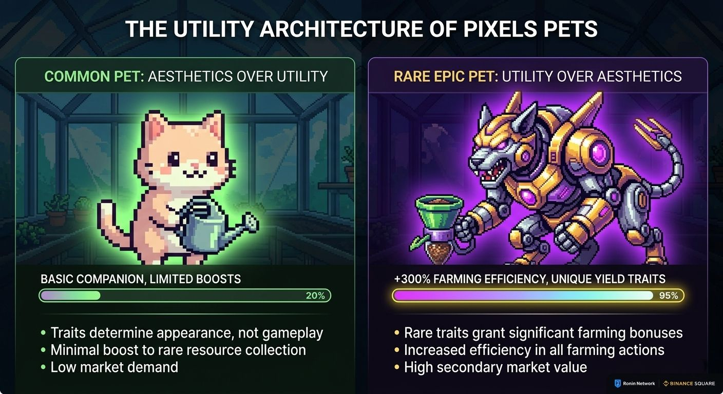 The interesting part isn't how rarity is implemented. It's whether the rare traits are actually worth having in gameplay terms or just worth having in resale terms. From what I can tell, Pixels has put real thought into making utility track rarity. A pet with rare traits should perform better at specific farming tasks.