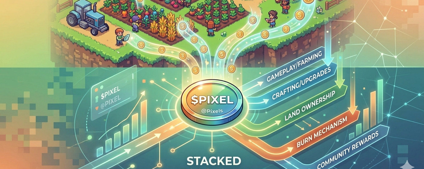 Le token $PIXEL est au cœur de chaque transaction artisanale, de l'achat de terres à l'amélioration des compétences, créant une demande organique constante.