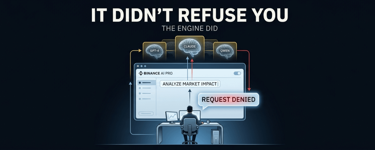 Binance stworzyło AI Pro. Ale decyzja o odrzuceniu twojego pytania została podjęta przez OpenAI lub Anthropic - a Binance nie ma przycisku nadpisania.