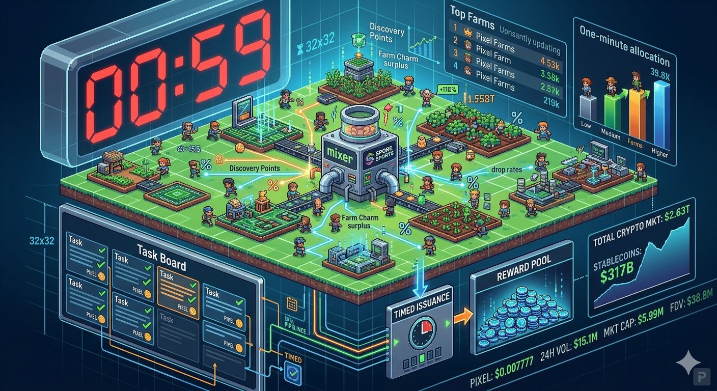 As of April 19, PIXEL trades around $0.007777, with roughly $15.1 million in 24-hour volume against a market cap near $5.99 million and FDV around $38.8 million. In the same market, crypto as a whole sits near $2.63 trillion and stablecoins alone near $317 billion. So small game tokens are competing inside a liquidity environment that rewards fast settlement more than patient attachment. The stronger interpretation, for now, is that one-minute landscape design is less about creativity under pressure than about turning attention into measurable, tradable behavior before conviction fades.